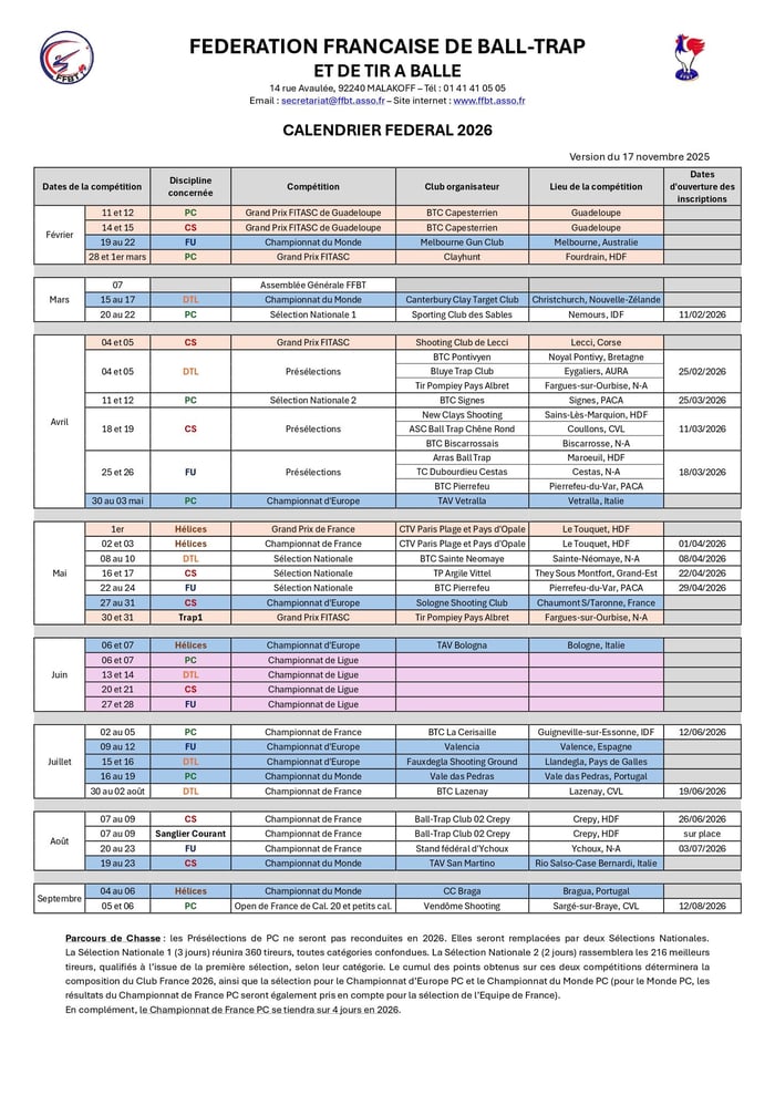 LICENCE FEDERALE 2026